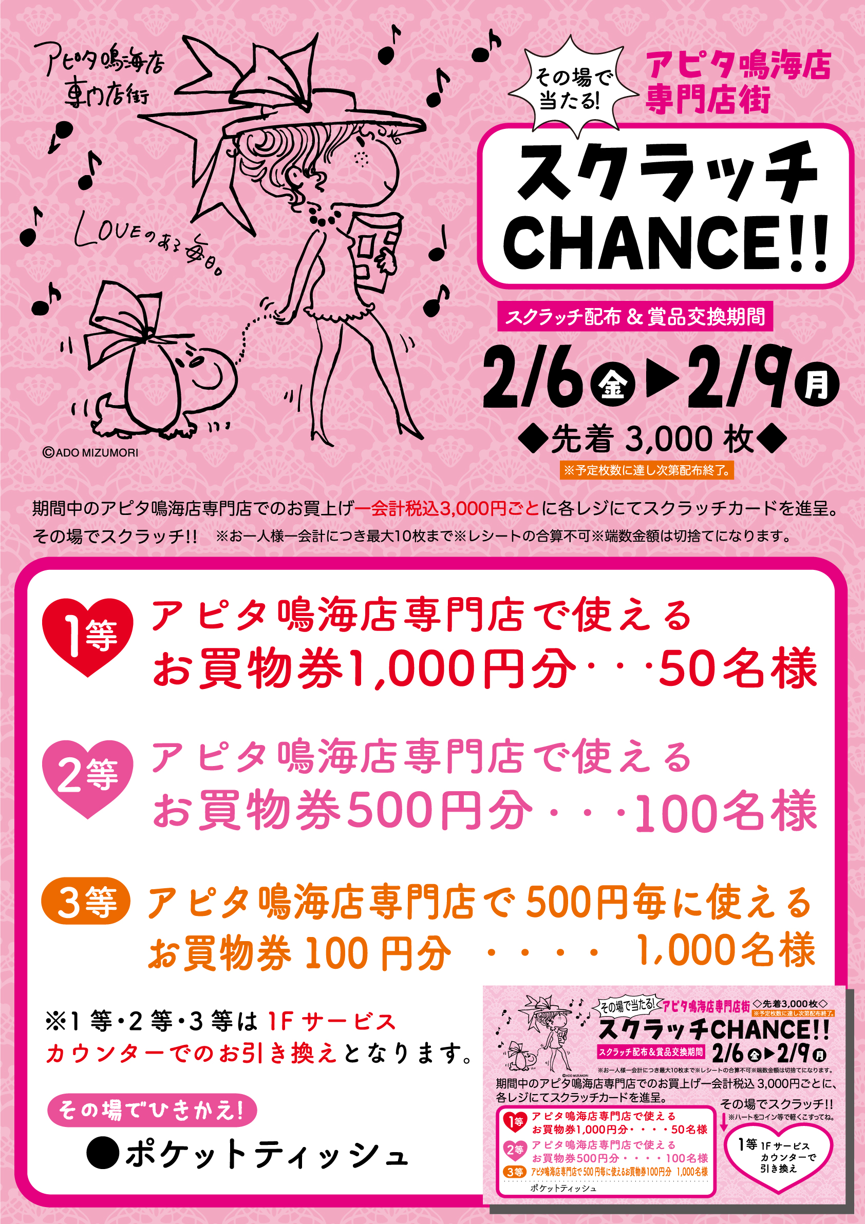 アピタ鳴海店専門店街の「スクラッチCHANCE!!」でおトクにお買い物♪