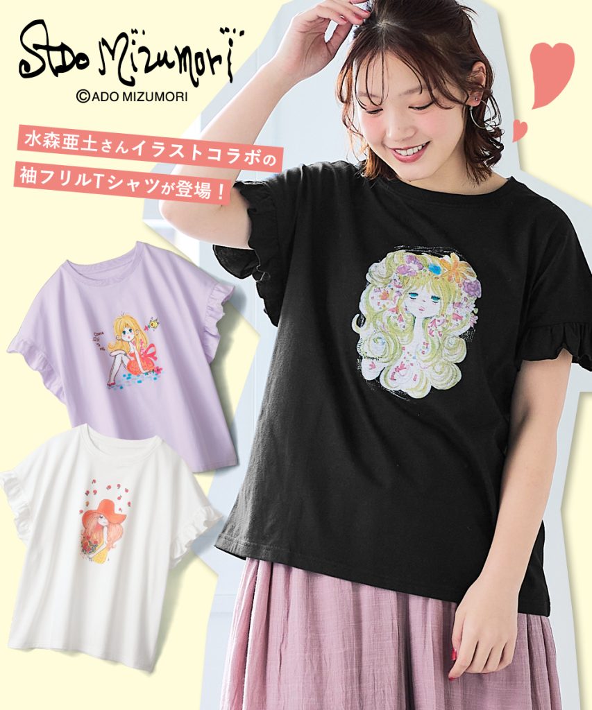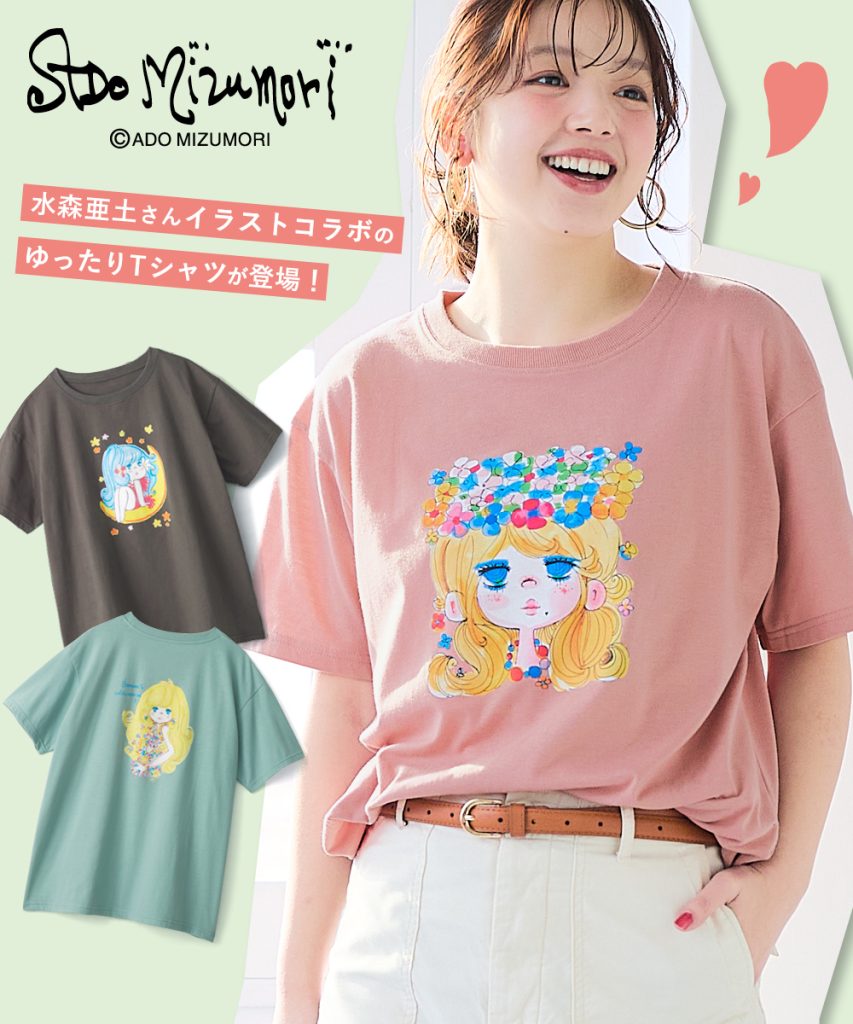 水森亜土の世界観をたっぷり詰め込んだ大人可愛いTシャツが、大きいサイズで新登場!